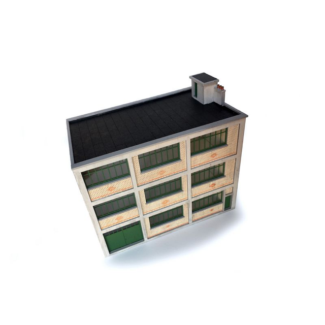 La manufacture des soupirs. Ce modèle s’inspire de la ‘’Manufacture parisienne de perles’’ du passage des soupirs. (non, ce n’est pas une blague). Ce bâtiment des années 1920 a une structure en béton armé avec un remplissage en briques peintes et décorées. Ce modèle à l’échelle 1/87 reproduit la structure intérieure poteaux/poutres/planchers. Modèle en version complète. Une structure avec planchers et poteaux est fournie.