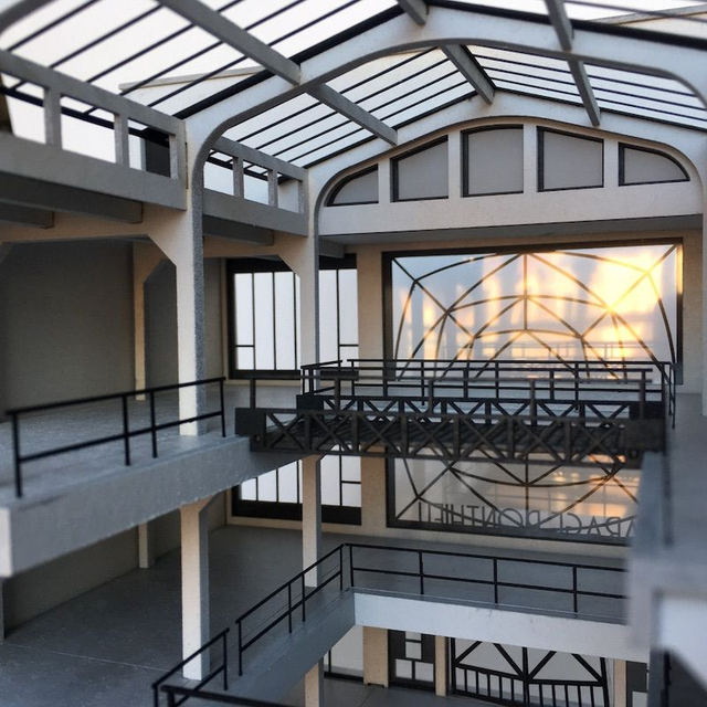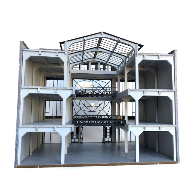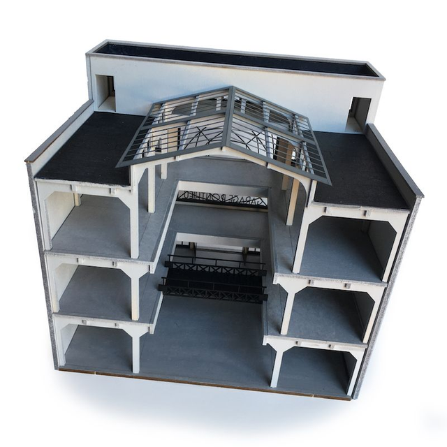 En 1906, alors que l’automobile est balbutiante, les frères Perret, architectes et constructeurs, bâtissent un grand garage pour automobiles, rue de Ponthieu, à proximité de l’avenue des Champs-Elysée, à Paris. Avec une fonction nouvelle, ce bâtiment se voulait très novateur: par sa structure poteaux/poutres/dalles en béton armé, par son enveloppe légère (verrière en toiture et sa rosace de verre et de métal en façade), par les technologies utilisées pour le rangement des voitures (plaque tournante, ascenseur, pont roulant…). Ce bâtiment a été démoli en 1970. Le modèle à l’échelle Ho vous permet de retrouver l’esprit du garage Ponthieu.