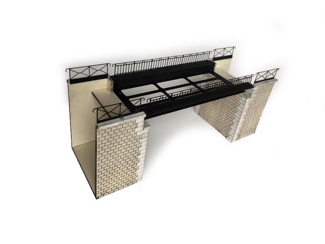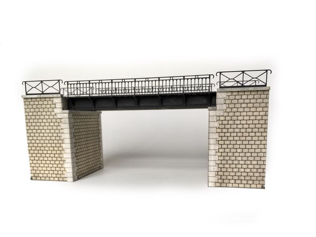 Ce pont ferroviaire s’inspire de l’ouvrage de la Petite Ceinture qui permet le franchissement de la rue d’Avron à Paris. Il est ici réduit à une voie unique. C’est une construction avec un tablier métallique, des trottoirs en encorbellement ainsi que des culées en maçonnerie. Il conviendra aussi pour bien des régions françaises. Le modèle est conçu pour une voie unique avec une plateforme de 10 mm d’épaisseur qui aura une largeur de 58 mm au droit des culées et de 44 mm au droit du tablier (longueur 130 mm).