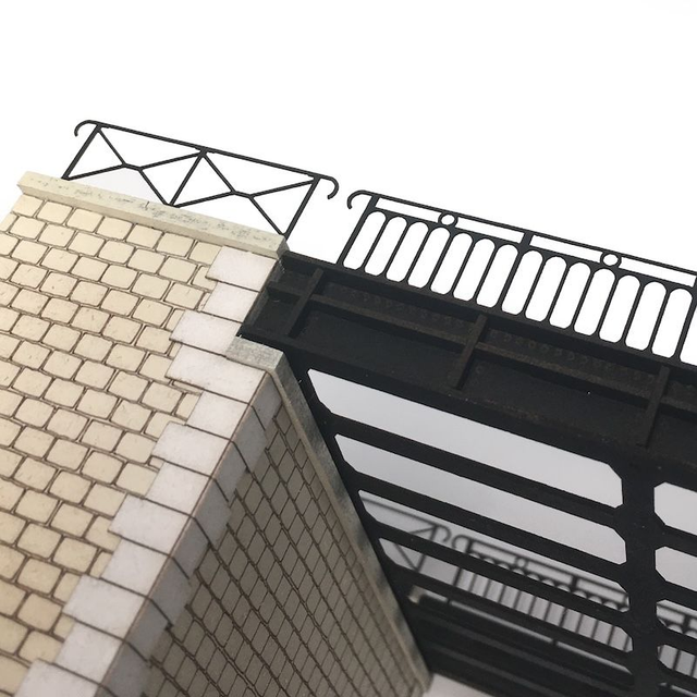 Ce pont ferroviaire s’inspire de l’ouvrage de la Petite Ceinture qui permet le franchissement de la rue Vitruve à Paris. C’est une construction avec un tablier métallique et des des culées en maçonnerie. Il conviendra aussi pour bien des régions françaises. Le modèle est conçu pour une voie double. Il est adapté pour revoir une plateforme de 99×10 mm de section.